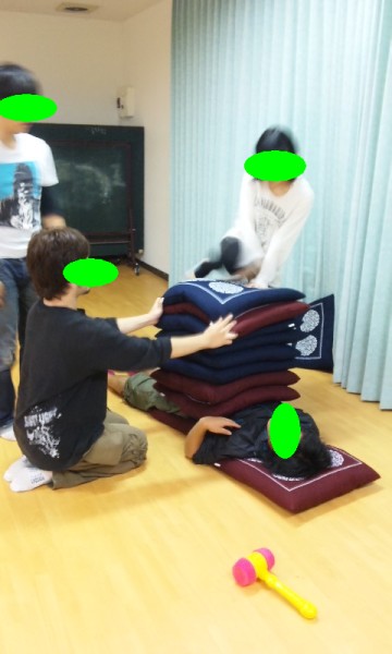 座布団に包まれるN君