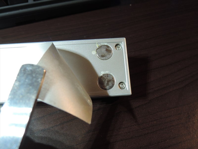 ↑裏面のラベルを剥がすと、マグネットとねじが隠れてました