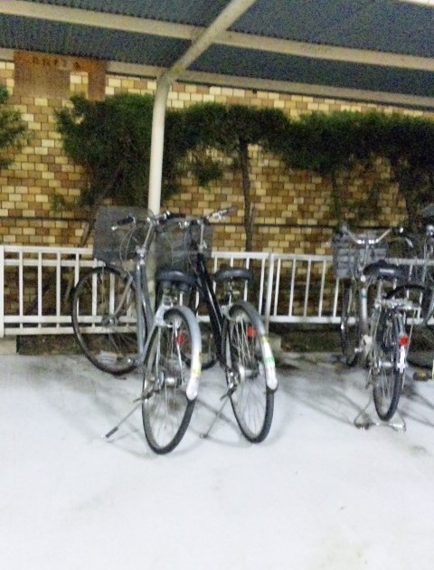 帰ってきたっけ、もっさんのチャリが俺のチャリにもたれ掛かってるw